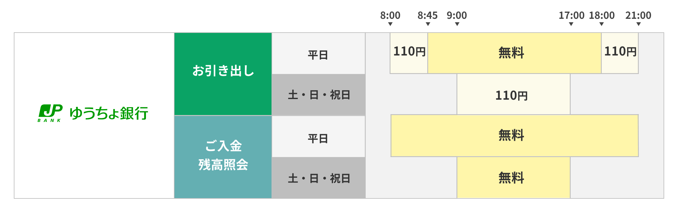 仕事終わりにお金を引き出すことが多いから、都度110円、