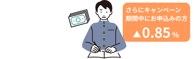 マイカーローン、教育ローン(カードローンタイプ)、教育ローン(一括借入れタイプ)はキャンペーン実施中です!