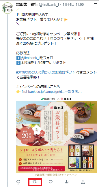 当行公式Xアカウント「1年間の感謝の気持ちを込めて、梅かまのお歳暮ギフトを贈ろう!」フォロー&リポストキャンペーン実施について