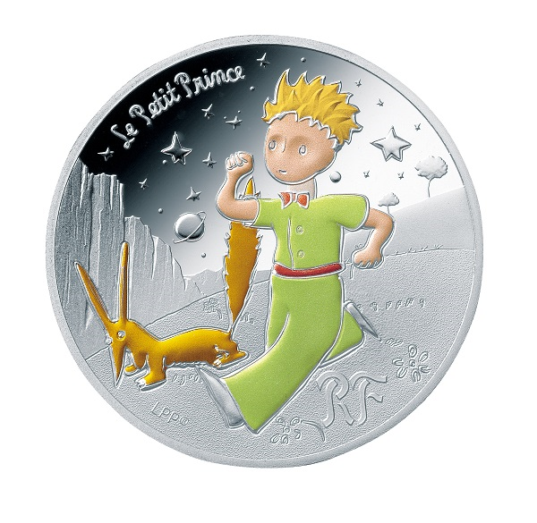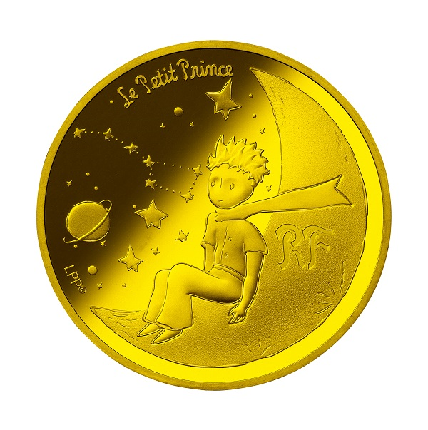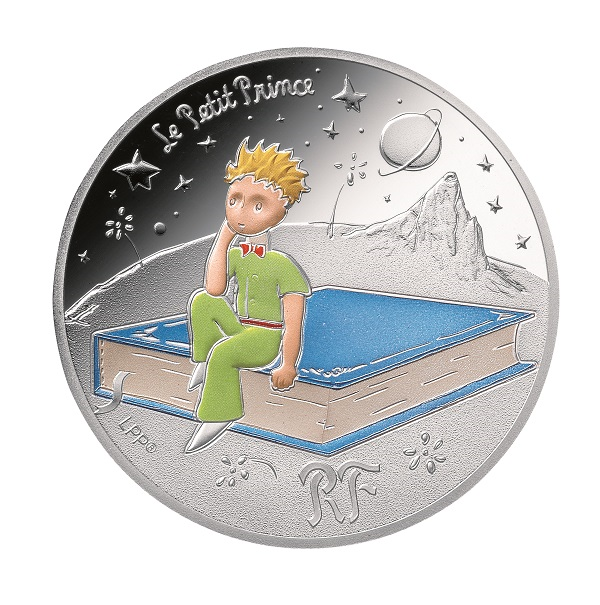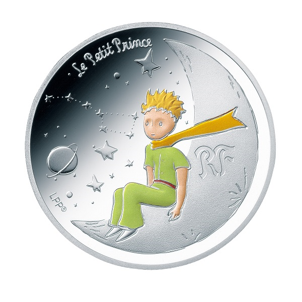 原作には登場しない「三日月」のモチーフを大きく配し、そこにちょこんと腰掛けて遠くをみつめる王子さまを描いたオリジナリティ溢れるデザイン。その先には北斗七星や土星など、大小さまざまな星が描かれています。発行国(République française)を表す「RF」、星の王子さま(Le Petit Prince)トレードマーク「LPP」なども刻まれています。カラー銀貨は王子さまがカラーで描かれ、原作の世界観を感じさせるデザインとなっています。 |