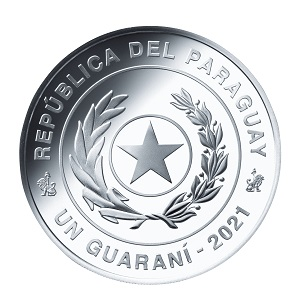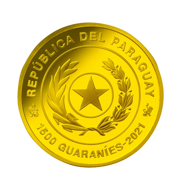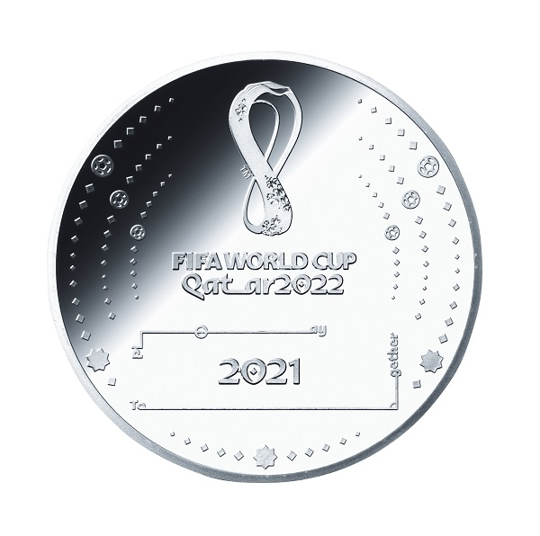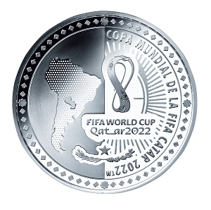 【裏面】 星を中心に2本のヤシとオリーブの枝が囲むパラグアイの国章をデザイン。周囲には、発行国名「República del Paraguai」(パラグアイ共和国)、額面、発行年が刻まれています。 【表面】 右側には大会公式エンブレム、左側には南米大陸とパラグアイの位置が凹凸で刻まれています。周囲には大会の公式アートワークやパラグアイ国章の星やオリーブなどのモチーフが描かれています。周囲にはスペイン語で「FIFAワールドカップカタール2022」と記されています。