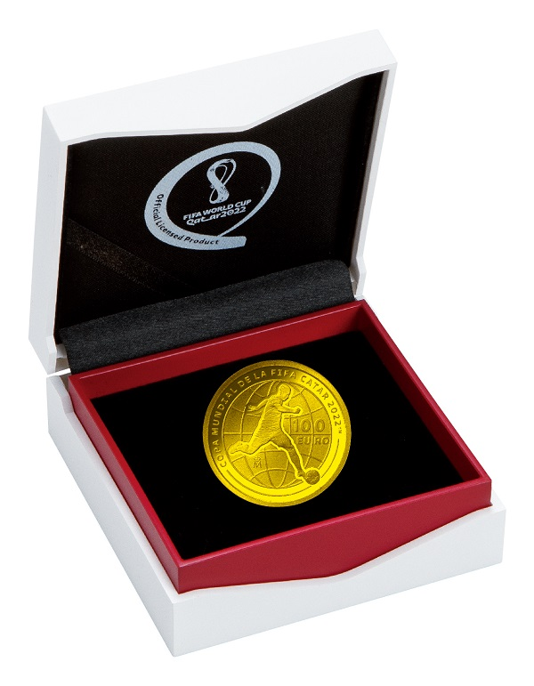 【裏面】 シュートを放つ瞬間の選手をモチーフに、ユニフォームのシワなども緻密な刻印技術で躍動的に表現されています。背景には地球儀をイメージした曲線が描かれ、周囲にはスペイン語で「FIFAワールドカップカタール2022」、額面、王立スペイン造幣局のロゴも刻まれています。 【表面】 2014年に即位したスペイン国王フェリペ6世の肖像を中央に描き、周囲には発行年やスペイン語で「FELIPE VI REY DE ESPAÑA (スペイン国王)」と刻印。フェリペ6世はオリンピックの出場経験を持つスポーツマンとしても知られています。 |