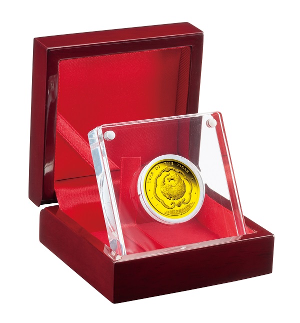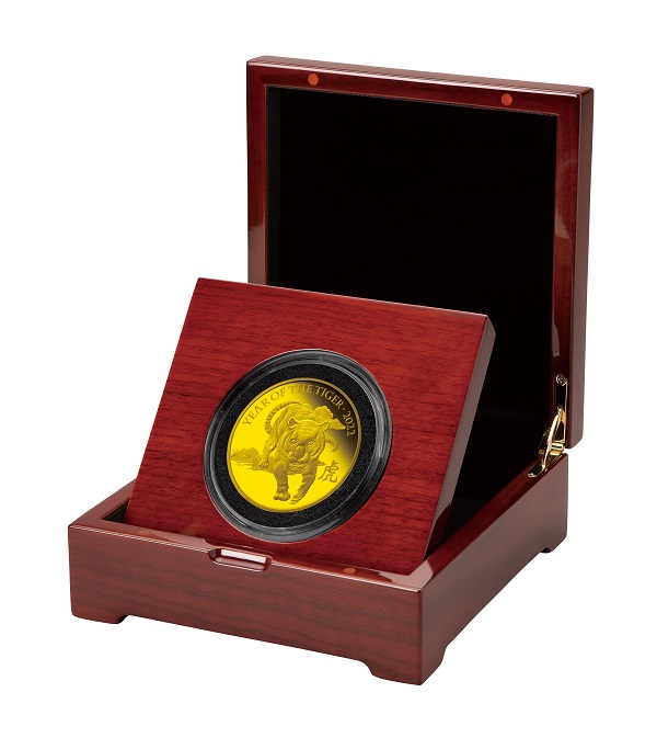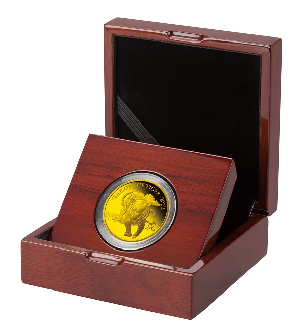 1100年以上の歴史を有する英国王立造幣局によるクラフトマンシップと最新の鋳造技術によって、コインから飛び出して来そうな迫力の虎を正面から繊細かつ立体的に描かれています。漢字の「虎」と英語で「YEAR OF THE TIGER」と刻まれ、西洋と東洋の文化が融合したデザインとなっています。