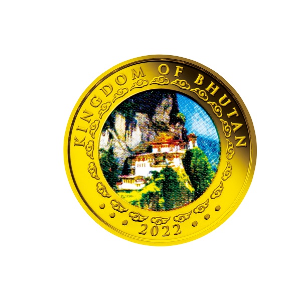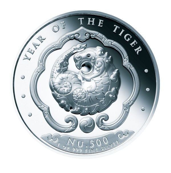 ヒマラヤ山脈に囲まれた大自然の動植物や雲と、活発に動き回る虎をグラフィカルに表現したデザイン。周りには英語で「YEAR OF THE TIGER」、額面などが刻まれています。“幸せの国”として知られるブータン王国の神秘的な魅力を美しいコインの輝きとともに堪能することができます。