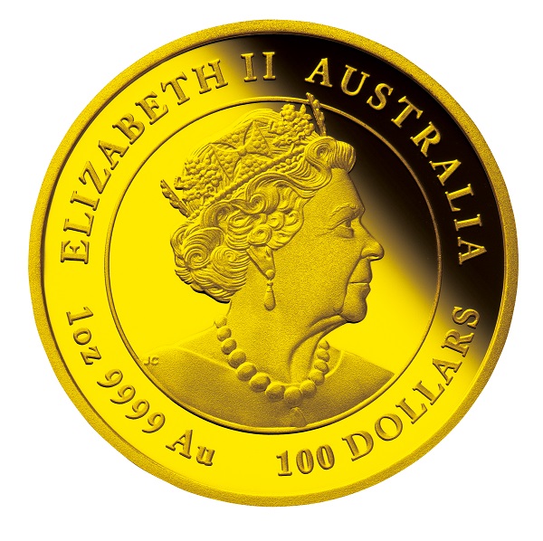 表面は100豪ドル金貨と同じデザイン。