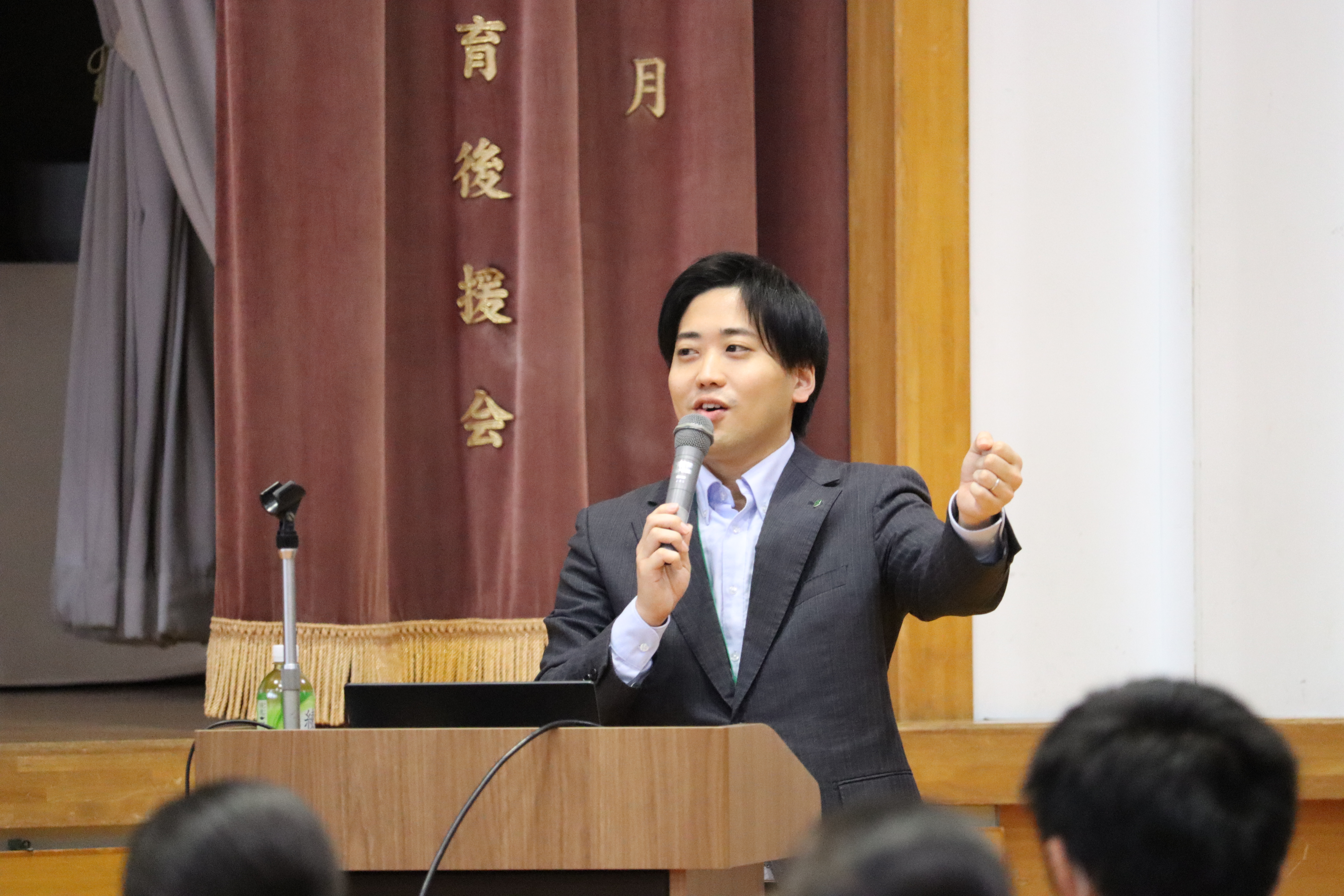 当行は、小矢部市立津沢中学校PTA主催のセミナーの一環として、小矢部市立津沢中学校への金融経済教育出前講座を実施しました。